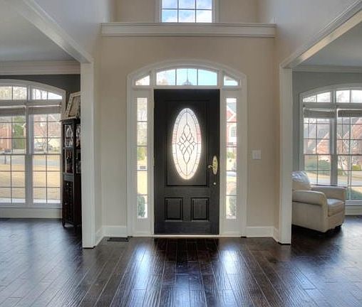 • Interior: Foyer - Entrance, Ceilings - Vaulted, Ceilings 9 Ft Plus, Double Vanity, Gas Logs, Separate Shower, Walk-in Closet, Garden Tub, Ceilings - Trey, Hardwood Floors, Carpet, Foyer - 2 Story