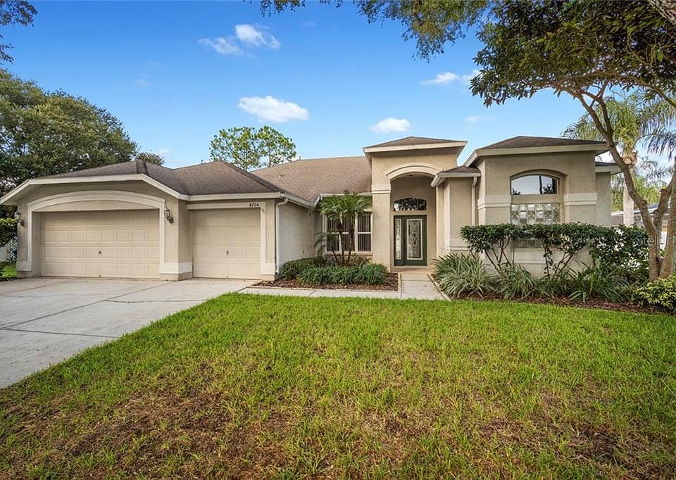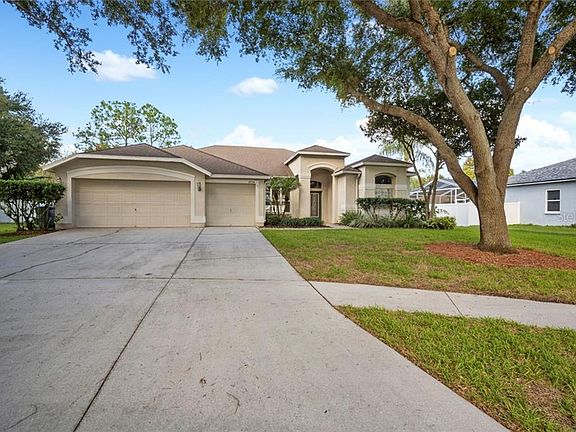Great neighborhood, zoned for A+ rated schools! This property features 4 bedrooms, 3 full bathrooms, and over 2600 heated sq ft of living space! You'll love the privacy this home offers with a large fenced back yard and location on a quiet cul de sac. The main living areas have an open and airy feel with vaulted ceilings and the spacious kitchen has a great breakfast bar that overlooks the family room with fireplace. Conveniently located minutes from everything in Fishhawk or on Bloomingdale Ave so you're close to lots of shopping, dining, and entertainment options. Come see this great opportunity to live in Lithia Ridge today!
