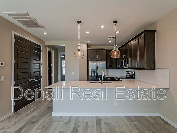 No Application Fees! Spacious and 3 bedroom, 2 bathroom townhome located in the highly sought-after Eastmark community of east Mesa. Residents enjoy access to a 96-acre Great Park with lakes, playgrounds, the iconic Orange Monster climbing structure, splash pad, skatepark, and miles of scenic trails. Community amenities also include a resort-style pool, clubhouse with game lounge, Steadfast Farm & Coffee, and top-rated schools all within walking distance. This home features a bright open floor plan with wood-look tile flooring in all high-traffic areas, neutral two-tone paint, ceiling fans in each room and upgraded window blinds throughout. The gourmet kitchen includes Corion countertops, upgraded cabinets with crown molding, subway tile backsplash, breakfast bar, stainless steel appliances, and separate pantry. The primary suite offers a spacious bedroom, walk-in closet, and private bathroom with dual vanities and step-in shower. Washing machine and dryer are included and two car garage for ample parking and storage.