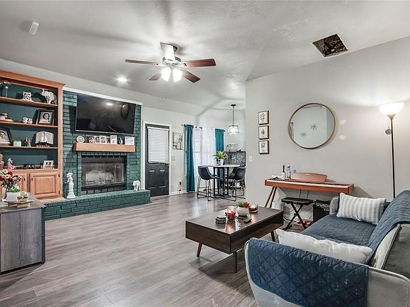 Beautiful 3 bedroom home with easy access to I40! Tasteful modern touches throughout and an adorable fireplace with a shelf built-in attached. Enjoy family time in this large fully fenced backyard, and have peace of mind having an underground storm shelter. Schedule your showing today!