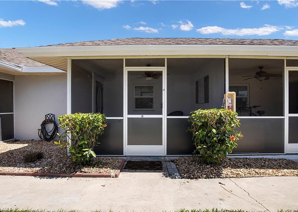 Adorable and Updated Condo. Immaculate, Bright & Airy! Two bedrooms, 2 bath. Beautiful updated Kitchen with soft close cabinets, granite counters and stainless appliances. Updated master bath. Tile throughout and freshly painted. Impact Resistant Windows and doors. Walk-in Pantry, Spacious Lanai on front of Condo. Low HOA fee! Walk to downtown. Close to everything in Cape Coral, Shopping, Dining, Entertainment, and the Water!