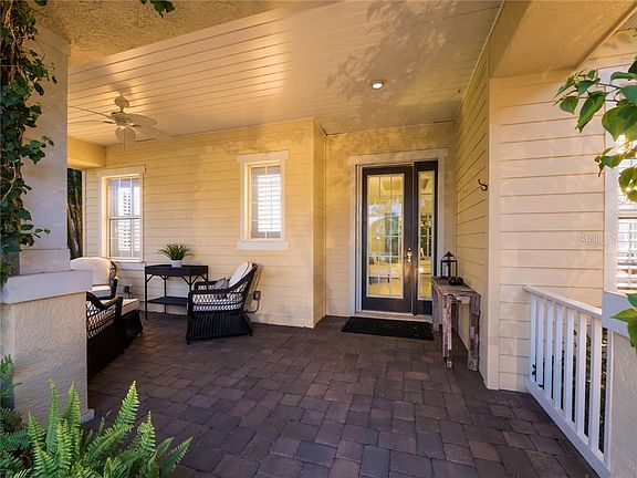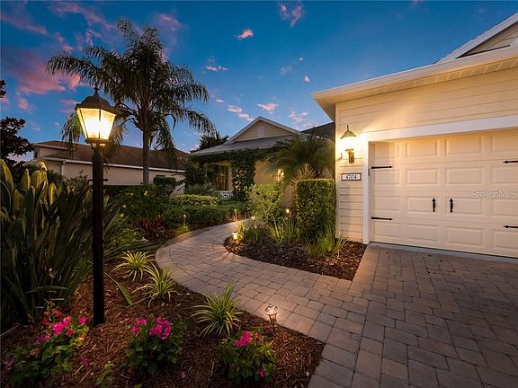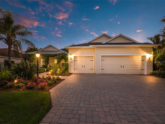 Absolutely, positively, this home packs the WOW factor - inside and out! Stunning from every aspect, you will be captured by the meticulously manicured landscaping, the most welcoming, cozy front porch and a feeling of enchantment from the moment you enter the home. Plan on multiple visits to appreciate the amount of details that have been attended to throughout the home. High quality fixtures, crown molding, accented tray ceilings and architectural accouterments compliment every aspect that captivates your interest with the sweetest coastal flare. The gourmet kitchen features the best of the best in cabinets, appliances and designer selections. Step into the spacious owners' suite with striking wood flooring, plantation shutters and a luxurious master bath. An entertainers dream, the home design flows from the front porch, to the kitchen, family room and to an absolute paradise of outdoor living space that is magnificent. You'll love the adorable outdoor bar, paved lanai, tropical spool and the most captivating views creating a getaway to tranquility with your private fire pit or fabulous pool parties! Located in the delightful community of Central Park in Lakewood Ranch, you'll enjoy the ease of a maintenance included lifestyle and a multitude of amenities including a community pool and 24-hour access fitness center, a 10-acre park featuring 2 dog parks, tennis courts, ball field, tot lot, splash park, covered pavilion & meandering paths. Don't miss out on this truly rare gem as your next home. This home is move in ready. Furniture is available for sale.