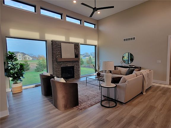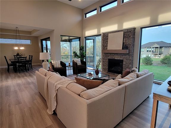 Bring the outdoors in with this split floor plan ranch. Centrally located kitchen with owner's suite on one side and 2 guest rms on the other. Kitchen has large quartz island, 66" refrigeration, walk in pantry, clear story windows & opens to great rm with stone fireplace & large windows on both sides. Large dining area has sliders to covered deck overlooking green space. The unique stairway location has detailed windows and leads you to a spacious family room with fireplace & bar. Two additional bedrooms are downstairs with a shared bath. Special attention to detail & quality throughout with this long-term local builder. Includes appliance-central vac-sod-landscaping-irrigation & our own warranty. Be part of Acadia without cookie cutter homes that will last the test of time. Easy access to trails-parks-80/35. Equity built in with this home being finished late 2023 & seller offering $20,000 in changes, fencing-landscaping-rate by down! All information obtained from seller and public records.