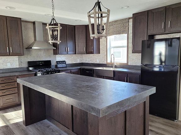 Beautiful Manufactured Home in a community on a private Lot / Beautiful Spacious home Attached Front Porch Large Kitchen Island Specialty Lighting Package Linoleum Flooring Throughout Window Treatments Included Media Wall w/ Decorative Accents