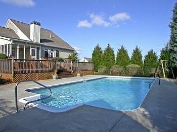 Wonderful 3 Sides Brick Home on 1.19 acres in North Hall! Less than a mile from all schools in the district! Nice kitchen with newer stainless steel appliances. Hardwood floors in great room and dining room. Curved staircase in foyer. Master with sitting area. Sunroom overlooks deck and in ground pool. Pool has new liner. Finished basement. Boat door. Must see!