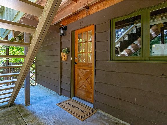 Private metchosin retreatSeasonal streamPan-abode style homeWood-clad wallsVaulted ceilingsGlass-enclosed hot tub roomDeck surrounded by nature