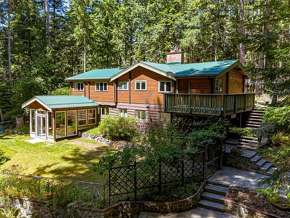 Come and discover this private Metchosin retreat, on over 2 acres of forested beauty with a seasonal stream and the timeless character of a Pan-Abode style home. With 4 bedrooms and 3 baths across approx. 2,400 sqft, this inviting family residence offers wood-clad walls, vaulted ceilings, and spaces that radiate warmth and charm. Gather in the glass-enclosed hot tub room, relax on the deck surrounded by nature, or explore the grounds and outbuildings including a powered workshop, chicken coop, shed, and firewood storage. Recent upgrades, including a heat pump, 200A electrical, and generator system bring modern comfort to this West Coast sanctuary. The property backs on to a 160 acre nature preserve, providing a feeling of endless greenery. Here, mornings start with birdsong, evenings end under starlight, and every day offers the chance to slow down and connect with what matters most.