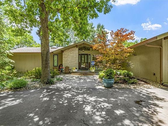 A true hidden gem in one of Shawnee's most serene and secluded neighborhoods. Black Swan Estates is a private community centered around an 18-acre lake allowing for kayaking, swimming, hiking, and many more outdoor activities. Perched above the lake is this rambling ranch that's been completely updated and expanded while keeping its mid-century modern feel. An open and inviting living room centers around a period-specific fireplace w/ stone hearth and continues with wood floors, cathedral ceiling, and sweeping views. Formal dining room complete with wet bar and beverage fridge. Unparalleled luxury and quality craftsmanship abound in the updated kitchen along with vaulted ceilings, cedar beams, and skylights. Thermador built-in fridge and pro-style gas range/hood. Soft close cabinets/drawers and a huge center island with a 3" mitered edge quartz countertop. Adjacent to the kitchen is a walk-in pantry, huge laundry room, mudroom w/ 6 cubbies, and a craft room. Cozy up in the family room w/ a stove-style fireplace and enjoy more great views. Primary room features a stone accent wall, dual closets, vaulted ceiling with skylight, heated bathroom floors, and a panoramic sliding door leading straight to the hot tub. Descend to the finished basement complete with a wet bar/full fridge, open family room, full bath, 4th/5th bedrooms, and tons of storage. The living experience is complete with an outdoor space unlike any other. Multiple decks and patios provide many entertaining options along with an outdoor fireplace, built-in grill and serving counter, heavily wooded half-acre lot and views! Enjoy the sunsets from the swing on the side covered porch where you'll also find a separate driveway and more storage. All of this coupled with great SMSD schools and close proximity to the now bustling downtown Shawnee!