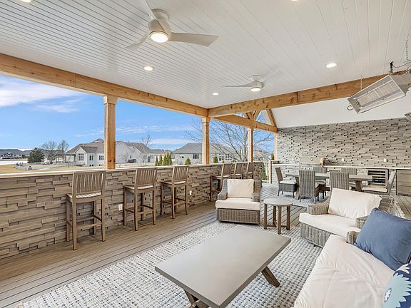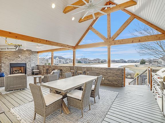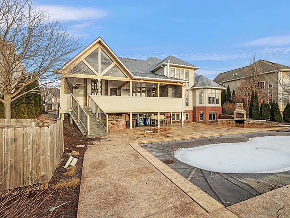 Remarkable opportunity to own this Masterly crafted waterfront property in Chestnut Grove Subdivision. No detail was overlooked in this nearly 6,000 square foot home. Once you walk through the front doors you will be amazed at the abundance of natural light, curved staircase, soaring ceilings, and beautiful newer hardwood floors. The Chef's kitchen has been updated with white custom cabinetry, new super white Marble countertops, and KitchenAid appliances. The first floor Master Bedroom with tray ceilings includes a spa-like Master Bath that has been redone with all new flooring, marble countertops, and marble tile walk-in shower. The second level features three generously sized bedrooms suites, all with new hardwood flooring and walk-in closets. The English basement has all new ceramic (wood look) floors and includes its own theater room, wine cellar, bedroom suite, and family room open to the kitchenette. The entertaining space is not limited to inside the home, host your gatherings outside on the newly added covered deck with a soaring vaulted beamed ceiling, a built-in kitchen, fireplace, and bar overlooking the professionally landscaped backyard with an in-ground pool, outdoor stone fireplace, & panoramic views of the lake. The home is equipped with new Hunter Douglas automated blinds and a new stamped metal roof. Don't miss your chance to own one of Champaign's finest properties.