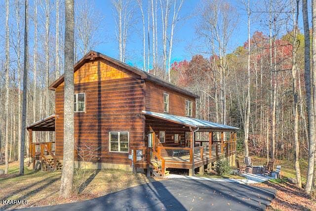 This new 3 BR / 3 BA cabin is located a short drive from downtown Gatlinburg. Cabin is being sold fully furnished. Main level master bedroom with large bathroom. Upstairs you will find a separate living/entertainment area with a 52' TV, electronic game table, leather seating and a set of bunk beds. There are also 2 additional king bedrooms, one with a master bath with tub/shower combination and the other with a walk in shower. Enjoy the outdoors while listening to nature on the large wrap-around deck or relaxing by the large stone fire pit.
