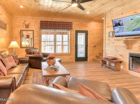 This new 3 BR / 3 BA cabin is located a short drive from downtown Gatlinburg. Cabin is being sold fully furnished. Main level master bedroom with large bathroom. Upstairs you will find a separate living/entertainment area with a 52' TV, electronic game table, leather seating and a set of bunk beds. There are also 2 additional king bedrooms, one with a master bath with tub/shower combination and the other with a walk in shower. Enjoy the outdoors while listening to nature on the large wrap-around deck or relaxing by the large stone fire pit. Items NOT TO REMAIN: Bedding, Linens and towels