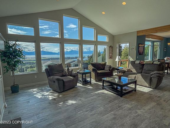 Welcome to Homer, Alaska - a harmonious blend of nature's beauty, where a stunning home stands amid panoramic vistas of Spit, Glacier, Bay, and Kenai Mountains. Serene Master Suite, inspiring office, seamless living spaces, and a deck to savor the fresh air. Family room, guest rooms, and ample storage await in the walkout basement. Embrace life's grandeur in this divine paradise!