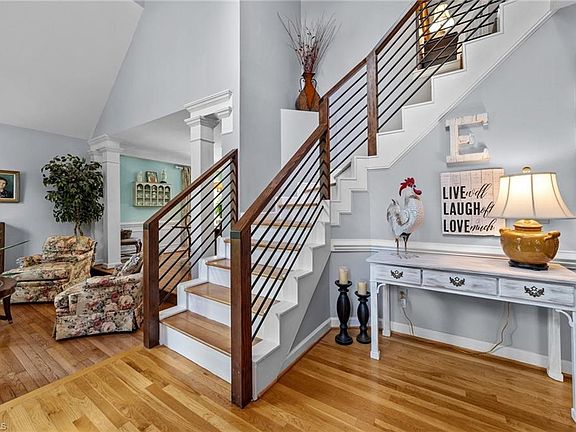 Welcome home to popular Northwest Greensboro. From the moment you enter, you'll be captivated by the stunning hdwd floors,the dramatic vaulted LR & a grand two-story foyer featuring a sleek, modern staircase. The remodeled kitchen is a chef's dream, boasting a lg. center island w/ a built-in wine refrigerator, custom cabinetry w/ thoughtfully designed space planning. This culinary haven seamlessly overlooks the impressive two-story Den, creating an ideal setting for both entertaining & everyday living. Upstairs, you'll find 4 generously sized bdrms. The primary suite is a luxurious retreat w/ an updated bath featuring a marble tile spa shower, a dbl bowl vanity & a spacious walk-in closet. The hall bath has also been updated to match the home's modern aesthetic. The back patio is perfect for relaxation & enjoying the serene surroundings of your fenced-in yard. Addit'l storage in the wired storage bldg. Windows 2021,HVAC 2023 Main & 2015 2nd, Roof 2023-composite 50 yr. metal shingle