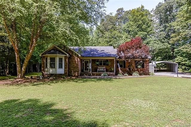 Single level retreat in Cabarrus County on over 2+ wooded acres. Enjoy privacy while still being close to modern conveniences. Covered front porch with wood/glass door leads to foyer/family room with stone fireplace/rustic mantle/windows overlooking back patio/trees. Open kitchen with tile flooring leads to dining area. Large storage closets throughout. Main level owner's suite with dual sink vanities/walk-in shower with bench seat/walk-in closet. Split floor plan with 2 additional bedrooms and 2 full baths on other side of home. White 2" blinds throughout. 2 car garage plus carport with electrical wiring and storage building. Back patio/fire pit. Home has an office/flex room that has a closet and leads to the 2nd large bedroom suite with private bath and jetted tub/dual sinks. This would be a fabulous second owner's suite/in-law/private suite. A doorway is in place so a door could be added and it could easily also be used as a 4th bedroom. Welcome to your rustic retreat!