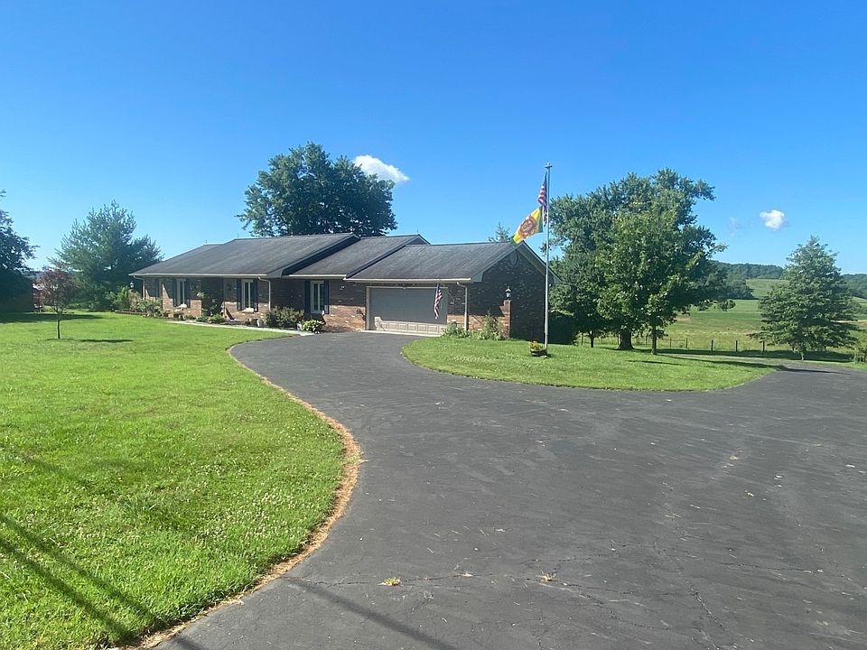 This 5 Bedroom 3 bath ranch style brick home with a fully finished basement sits on 4.53 acres by survey in Burkesville, Kentucky in Cumberland County. This home boasts Argo custom windows, granite counter tops, central vacuum system, solid wooden doors, antique brick fireplace in living room, custom wooden ceiling beams, patio deck leading from the kitchen for BBQ-s and entertaining with vista views of the property, full finished basement with French Doors leading out to a covered patio, nice shade trees in the back yard, landscaped with annual blooming bushes and flowers, & plenty of room to have a hobby farm, a garden and the luxury of being within a 5 minute drive to the quaint town of Burkesville. Dale Hollow Lake State Park know for trophy bass fishing and world class skiing only 20 minutes from the property. Call today for your showing.