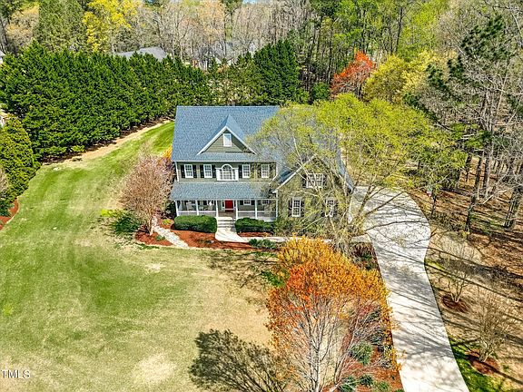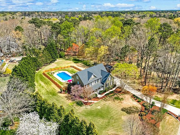 Amazing Location! Introducing an exquisite home exuding elegance and luxury, located in the highly desired and convenient 27539 area. This distinguished home is situated on your private oasis sprawling over a beautifully landscaped, tree-lined 1.5 acres! This stunning property is sure to impress at every turn. It boasts a recently renovated kitchen featuring gorgeous stone countertops with a farmhouse sink, stainless appliances and gas cooking. The kitchen seamlessly flows into the main living and breakfast area, accentuated by beautiful hardwood floors. Discover a flood of natural light that illuminates the open floor plan with floor to ceiling windows in the family room. Step outside into the expansive fenced-in backyard, where you'll find a huge deck and patio area with your own private in-ground salt water pool, perfect for entertaining and gatherings. Inside, discover flexible spaces ideal for a home office, gym, playroom, or library, allowing you to tailor the home to your lifestyle with ease. There is a main floor bedroom and ensuite bathroom-perfect for guests. Also on the main level, enjoy a separate living area and dining area. On the second level, the primary suite is a serene retreat, boasting a walk-in shower, clawfoot soaking tub, dual vanities, and a substantial walk-in closet. A huge bonus/flex room with closet, and 2 additional, spacious bedrooms are also located on the second floor. There's ample room for everyone to unwind and relax. Permanent stairway to the unfinished attic (974 sq ft) for all of your storage or expansion needs (HVAC line already run for expansion). Conveniently equipped with an oversized, side load, 2-car garage, this home offers luxury, privacy and is in the perfect location. Ask for a list of the property features and upgrades!