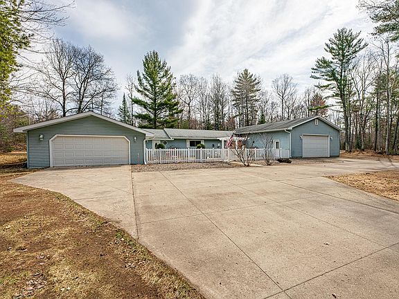 $3,000 credit at closing for paint! Welcome to your spacious retreat nestled on 2.19 acres of serene landscape, just a stone's throw away from town convenience. This charming 3-bedroom, 1-bathroom home with a 2 car attached garage offers ample space for comfortable living, with an open great room layout perfect for entertaining or relaxing. The highlight of this property is its expansive 30 X 54 detached garage, providing plenty of room for parking, storage, or pursuing hobbies. Whether you're enjoying the peaceful surroundings from the cozy interior or exploring the vast outdoor space, this property offers the ideal blend of tranquility and accessibility for your Northern Wisconsin lifestyle. Call your agent today to set up an appointment!