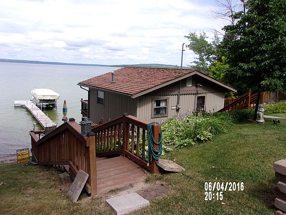 2 bedroom, 1 bath cottage and adjoining guest house on Hubbard Lake's E. shore!! The perfect "up north" getaway with cozy interior with knotty pine, split stone " natrl. gas fireplace", open living space with great windows and galley kitchen, glassed in porch/family room 16'x20' with spectacular view of "The Lake". complete with heat and AC. Gentle slope to water's edge leads to the "adorable" 20' x 20' guest house that comes complete with kitchen, bath, a full size bed + 2 twins for "company".....also a deck overlooking water. The lower level of the guest house there is a "mechanical room, washer/dryer and great storage. Extra long dock....