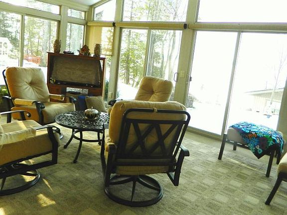 Breathtaking Sunsets! Immaculate, move in ready, turn key Ranch home. 2 bedrooms, full bath, open dining, kitchen & living area with split stone natural gas fireplace. 16' X 20' Sun Room full glass on three sides. Attached 1 1/2 car garage, central air, new shingles in 2017 and new furnace in 2016. 20' X 20' Guest cottage, kitchenette, 3/4 bath, living/sleeping area overlooking the lake with wrap around deck. 16' x 20' basement under the guest cottage consists of storage, laundry & mechanical area. A must see to appreciate the warmth, cozy, welcoming atmosphere this home is offering.