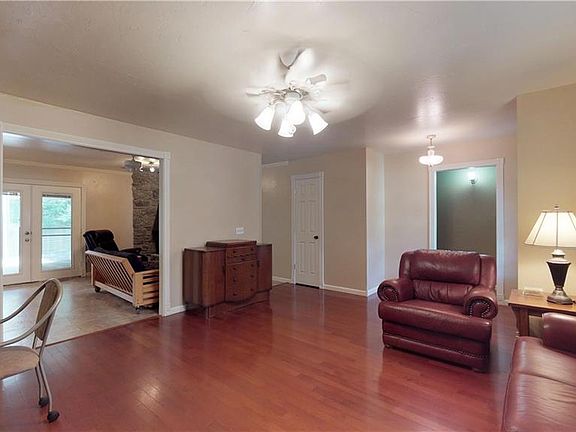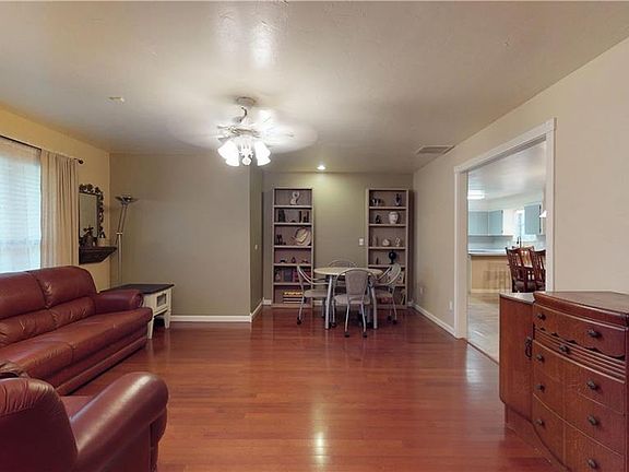 Beautiful well cared for home, nicely landscaped in the front and back. Backyard features a large partially open deck, a stone walking path, and two storage buildings. Hardwood floors in the front living, dining and hall. New carpet in the secondary bedrooms. The master has an updated full bath with a shower that is wheelchair accessible, a walk in closet with built in shelves, and a bonus room with a door to the patio. Second living has a corner stone fireplace. Kitchen has a pantry and a breakfast bar and is open to the second living and dining. There is an office off of the kitchen with built in cabinets. The laundry room has cabinets and a sink.
