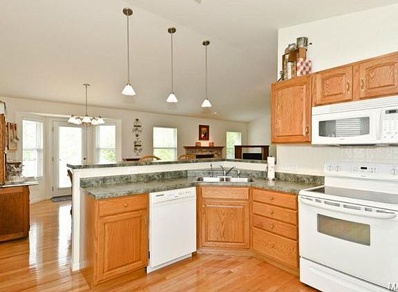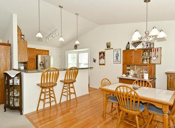 Benefits of subdivision living with the feel of wooded paradise! Relax on the patio overlooking the backyard trees on this level fenced yard. USDA FINANCING AVAILABLE HERE...0 DOWN! Hardwood foyer opens up to the soaring vaulted ceilings in the Great Room with brick fireplace and gas logs. The Kitchen is also vaulted with hardwood flooring, built-in microwave, track & pendant lighting, breakfast bar and eat-in kitchen with triple bay window (pantry to left of fridge) French doors open into the vaulted Master Bedroom Suite with walk in closet. Relax in the separate tub in the Master Bath offering double sinks, shower with seat, and picture window above the oval tub. Other premiums include security system, water softener, water purification system and rough in for bath in Lower Level. Roof is only 2 years old, evaporator coil in A/C 1 year ago and Convenient Main Floor Laundry. Walking distance to Splash Station Aquatic Park and close to shopping, restaurants and interstates. .
