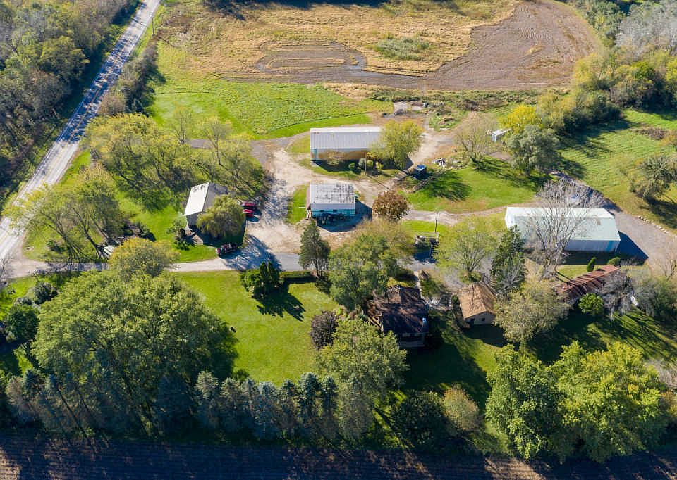 Unique opportunity to own 11 acres with a single family home and 4 outbuildings. Perfect for a landscaping company or a contractor. Walk from your home to your office in minutes. 2 story colonial with 4 bedrooms including a first floor master suite and a finished walkout basement needs updating but in good condition. Metal building 40 x 30 is the current office and includes heat, kitchenette, 2 half baths, and 4' storage on the 2nd floor. 2 metal buildings 80 x 40 and feature electricity, concrete and gravel floor and sliding doors. One building with 220 service. Block building is 40 x 40 improved with concrete floors, heated, loft, water and a small office. Adjacent acreage is also for sale depending on your needs.