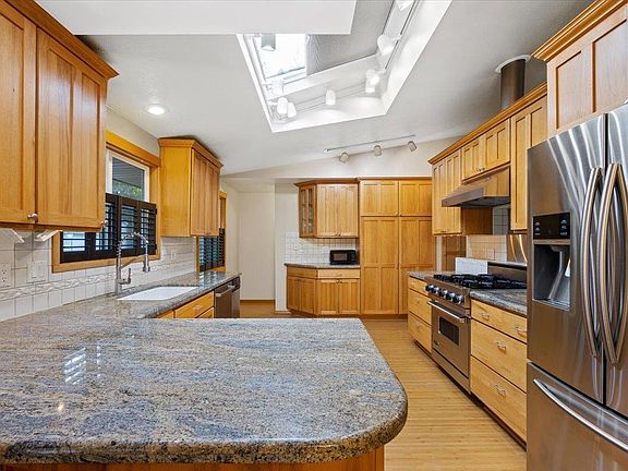 Did you say SHOP? Check out this beautiful 5 bedroom, 4 bath rancher and the impressive, insulated 40x40 shop w 12' RV door! The kitchen has bamboo flooring, granite counters, Viking range and tons of natural light. There are 2 family rooms and a den, all have fireplaces. 3 bed/2bath up. 2 bed/2bath down. Jetted tub/ double sinks in spacious downstairs master suite. Central vac, wet bar plumbed downstairs, daylight walkout to back yard. Large composite deck overlooks freshly planted, water-saving clover backyard. Brand new garage door, new gutters and leaf guards, newer furnace/AC and water heater. Don't miss out on this highly desirable and private Ponderosa beauty!