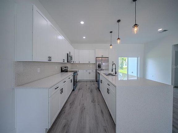 ** Seller is offering closing costs as incentive!** MOVE-IN READY**This stunning home, located on a spacious lot has 4 bedrooms, 2 bathrooms and 1 half-bathroom, large living room with open concept kitchen, equipped with stainless steel appliances including a range, refrigerator, garbage disposal, dishwasher, and microwave, as well as an island and ample cabinet space, perfect for hosting large family gatherings. Rooms are spacious and comfortable, which allows for seamless flow and natural light throughout the home. The house has several upgrades, such as vinyl flooring, floor to ceilings tiles on bathrooms and lanai with space for outdoor kitchen. With a two-car garage, in addition to being more spacious, has a greater height than standard. It is a perfect place to live or invest.
