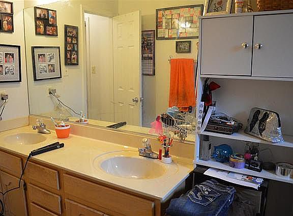 3 bedrooms with 2 & 1/2 baths. Master bedroom and attached bathroom are downstairs. Mater is very large with a large walk in closet and regular size closet. The master bath is also large with shower and jet tub. 2 bedrooms upstairs with 2nd bathroom. Rooms are both very large. One bedroom has a large walk in closet, other bedroom has 2 smaller closets. There is a large living area with a dinning area off of the living room. The kitchen is also a very good size with room enough for a small table. There is also a small room for the washer and dryer.
