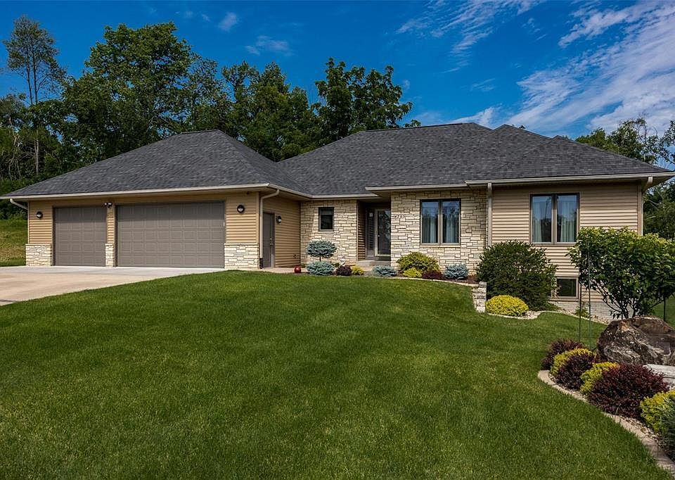 Location, Location! Quiet, tucked away location for this exceptionally well kept home w/a private backyard backing up to timber. The yard is loaded w/ perennials, irrigation & amazing views of it all from the deck or patio! Tucked away on a wooded cul-de-sac w/ a country feel yet only 2 miles to Hy-Vee. You wont need to worry about any major updates as theyve all been done. New roof, siding, garage doors & chain link fence in 2022. Furnace, Air, Water Heater & sump pump with battery backup have also been updated. Main level is handicap accessible and includes a custom built ramp in the garage. Custom Fashion-Par kitchen with Corian Island & tons of natural light. Oversized 3 stall garage with hot/cold water & newer furnace included. Wired for security & sound system. This home is loaded with storage space & the lower level walks out to a 1,400 sq ft patio/backyard. 9ft ceilings, wet bar, large daylight windows & more!