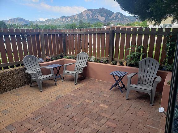 Beautiful location with private courtyard and Flat Iron mountian view! Fully furnished 2 bedroom, one bath. Close proximity to Table Mesa bus transportation, Highway 36, Broadway Blvd, shopping, breweries, and less than 4 miles to CU Campus. Individually owned and looking for up to 1- year rental lease, possibly longer upon review. Access to the Flat Irons and nature trails right down the road. There are also close parks to cross country ski at in the winter. The condo sleeps 4 with the master bedroom including a king bed and walk in closet with a smart t.v. The 2nd bedroom has 2 twin beds with a dresser and closet with smart tv. The bathroom has tile throughout. There is a washer and dryer on premise as well as a rustic burning wood stove and full kitchen with a dishwasher and amenities, also air conditioners in living room with smart tv and master bedroom. 25lbs maximum for a dog, no acception for larger dogs and no cats. On street parking and a spacious private court yard. Please, serious inquiry only! Thank you for your interest. Available August 6, 2024 . Can be viewed in July. Owner pays for water and trash removal at building in parking court. Renter is responsible for electrical and internet/cable. No smoking in unit. On street parking. Only dogs up to 25lbs. No cats. Up to 2 year lease. Garage is not available.