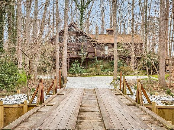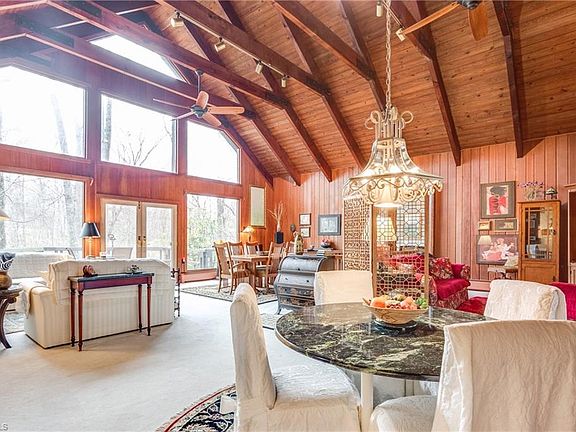 PRICED BELOW APPRAISED VALUE! Unique contemporary on 5+ ac in Sedgefield. Private wooded setting w/creek & custom bridge entry. Portion of property borders Grandover golf course. The grt rm is approx 850 sqft w/stone fplace & soaring ceiling. Abundance of windows provide spectacular views from front & rear. Remodeled full baths w/heated tile floors. Bedrm suite on lower level w/sitting room/office. Large bonus rm on lower level great for entertaining. Master w/fplace. Mbath w/sep shwr & soaking tub.