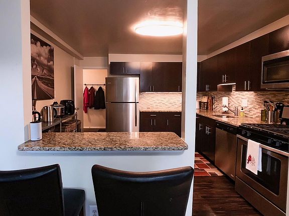 This spacious 1,400 sq. ft. apartment with 2 bedrooms, 2 full-baths and private patio with sliding glass doors invites comfort and delivers all the conveniences of being centrally located. The space features a generous living space and dining room open to the kitchen - you'll enjoy a perfect setting for relaxing and entertaining. The recently-renovated kitchen will inspire your inner chef with its granite counters, breakfast bar, and brand new stainless-steel appliances, including a gas range. The expansive master bedroom suite has its own private bath, plus a huge walk-in closet and another closet/storage room that is approximately 12' x 6'. The master suite also features room for a sitting area in addition to a king size bed, two nightstand and two dressers. A true retreat and perfect place to wind down the day. The second bedroom also features a large walk-in closet. You'll love your own off-street parking, a laundry room located in the unit with a washer and dryer included, and a great neighborhood on the bus line with the convenience of great parks, shops, and restaurants minutes away. The property also features a large pool, dog areas, fitness center, and a business center - no additional fees. This is a lease take-over and we will pay the application fee and lease transfer fee. We are also covering the security deposit - all you need is the first month's rent to move into your new home! Available June 23rd. Apartment Features: Bedrooms: 2 Very Large Full Bathrooms: 2 Rent: $2098 Deposit: None Square Footage: 1,400 Pets Allowed: Yes Lease Term: February 2018 with option to renew Pet Friendly! Interior Amenities: Stainless Steel Appliances Gas Range Central Air Conditioning Lots of Closet Space Storage Space Ceiling fans Washer and dryer Patio Complex Amenities Playgrounds Off-Street Parking Bus Stop Right in Front of Complex Lease takeover. Lease is up February 2019 with option to renew