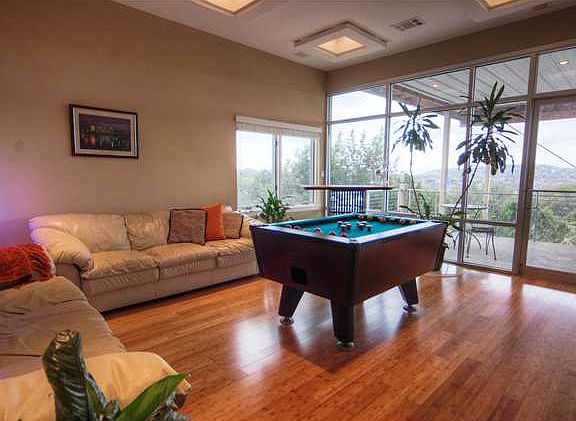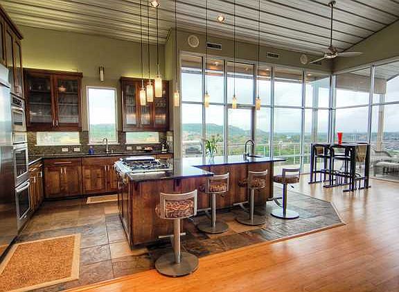 Breathtaking contemporary custom on cul-de-sac~Dramatic greatroom opens to literally walls of windows(+ solar shades) to frame panoramic views of Lake Austin~MUST see metal & lighted ceiling accents~(4 car gar)~skip all stairs w/elevator~Gourmet stanlss appliances(gas)+granite~Custom pecan cabinetry in kit & liv~Bamboo, slate & travertine floors~Giant decks &gameroom to impress~Completely separate ground level guest quarters (mo. to mo. for $1100)w/cvrd prkng area, granite, stained concrete & pr