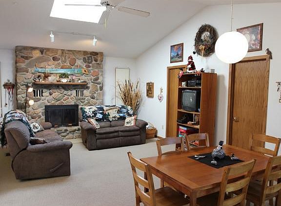 Must see 4 bedroom, 3 bath Camp Lake Home. Home has a fantastic view of Camp Lake & 137' of lakeshore. Home features vaulted ceilings, 4-season porch, deck, stone fireplace, central air, 4 year old steel roof, a two bedroom, 1/2 bath with family room bunkhouse, situated on a private lot. 40 x 30 Polebarn.