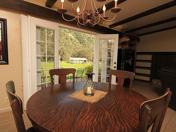 Just under an acre of land out of the way of the Arroyo Seco River, but still within earshot, this home is perfect for raising a family. The property has a large dog run, can have horses, has room for a pool, includes a large potting shed, indoor firewood closet, updated kitchen with Silestone Quartz counter tops. The front bedroom is currently being used as an office. Low maintenance yard and views that are spectacular. AND one of the most innovative gutter systems I've ever seen. If you are looking for quiet, look no further, this one is for you.