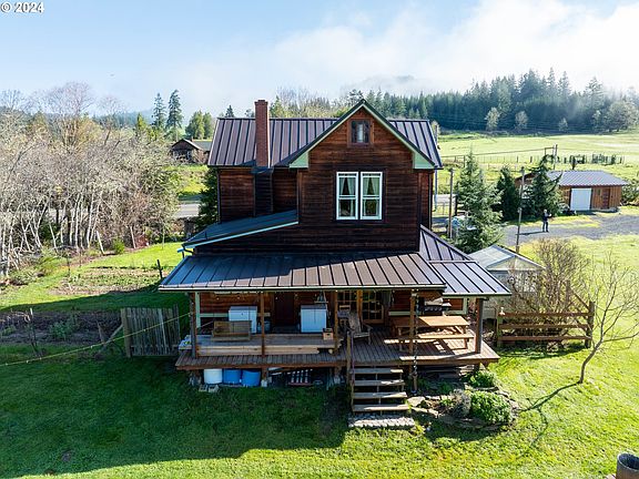 Step back in time and embrace the rustic charm of this lovingly renovated 1912 farmhouse, nestled on 5.65 acres of picturesque land with 360 ft of Coquille River frontage. Meticulously restored over the past decade, no detail has been spared in updating this historic home to modern standards while preserving its timeless character. From the moment you step onto the front porch, you'll be captivated by the warm ambiance and inviting atmosphere. Inside, discover a seamless blend of old-world charm and contemporary convenience. The interior features three bedrooms, one bath, and a spacious living area adorned with wainscotting, bamboo floors, and cedar ceilings. Imagine cozy evenings gathered around the wood cookstove, creating memories that will last a lifetime. The renovation encompasses every aspect of the home, from the plumbing and electrical systems to the exterior siding and vinyl windows. Enjoy peace of mind knowing that the block perimeter foundation, insulated walls, and ceiling provide durability and energy efficiency year-round. Outside, the property is a nature lover's paradise. Cast a line and reel in the day's catch right from your backyard. With 45 productive fruit trees, around 30 productive grapevines, 350 blueberry plants, and a bountiful vegetable garden, you'll delight in the joys of harvesting your own fresh produce. For those with a green thumb, the possibilities are endless. The property is zoned EFU, allowing you to cultivate your own farm and embrace a sustainable lifestyle. A new tractor shed with power and a garage provide ample space for equipment and storage, making it easy to maintain the land and pursue your agricultural dreams. Located in a moderate climate, this idyllic retreat offers the perfect balance of rural tranquility and modern amenities.
