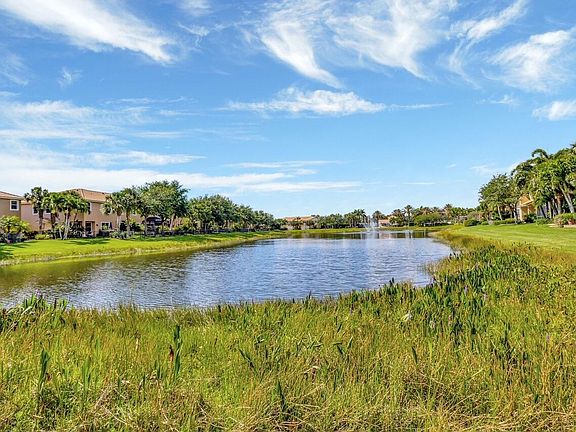 Largest townhome floor plan in Paloma. Madrid model on premium water lot w/over 2300 sf. Impact glass and plantation shutters throughout. This 3/2.5 has a grand 2-story open entry & a huge loft area. Porcelain tile 1st level & beautiful wood flooring on 2nd. Kitchen w/breakfast bar & dining area open to bright family room plus separate dining/office & living room. Appliances replaced 2020, A/C 2014, water heater 2022, upgraded stair railings, central vac, tray ceilings, custom master closet. Large pavered patio overlooking longest views of the lake. Private courtyard entrance w/detached 2-car epoxy finished garage. All wall mounted TVs to remain. Paloma is mins away from the restaurants, retail, and all the action of the Palm Beaches.