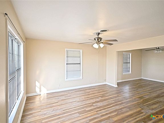 Come home to your very own peaceful country retreat with this adorable 3 bed/2 bath home to rent nestled near Hwy 123 towards San Marcos. Pull on up to the attached carport (featuring laundry room) and walk into this home to explore many of its interior charms. Beautiful wood vinyl flooring cascades throughout the home. The kitchen has white tile countertops, wood stained cabinets, and tiled backsplash. Both bathrooms retain their mid-century style with tiled showers and built-in features. Gaze upon the open field with plenty of room to stretch out your legs or simply relax underneath the covered backyard porch.