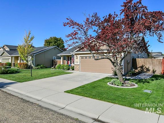 So many upgrades and amenities are packed into this immaculate single level home in great S Caldwell location! Vaulted ceilings in living room and master suite, master bath has large step-in shower with seat and double showerheads, new front door with leaded glass, nice upgraded door and window trim, freshly painted ceilings, lots of windows providing natural light, new LED lighting in laundry room and garage, spacious laundry room with lots of cabinets, wood-look laminate floors, newer carpeting, nice kitchen with all appliances included, eating space has pantry closet and large desk area with lots of built-in drawers, updated HVAC with high-efficiency furnace, water softener, garage has side man door, shutters on all windows, full raingutters with leaf guards, updated architectural comp roof, and concrete walkway on garage side with gates on both sides. The backyard is incredible - fully privacy fenced, concrete curbing front and back, an awesome 14x18 covered patio, and meticulously maintained landscaping.