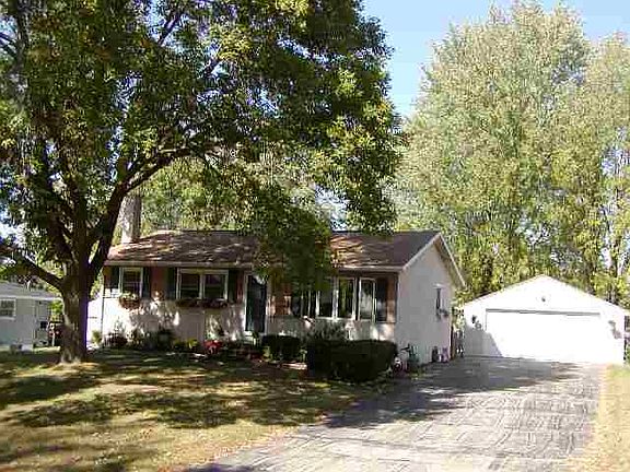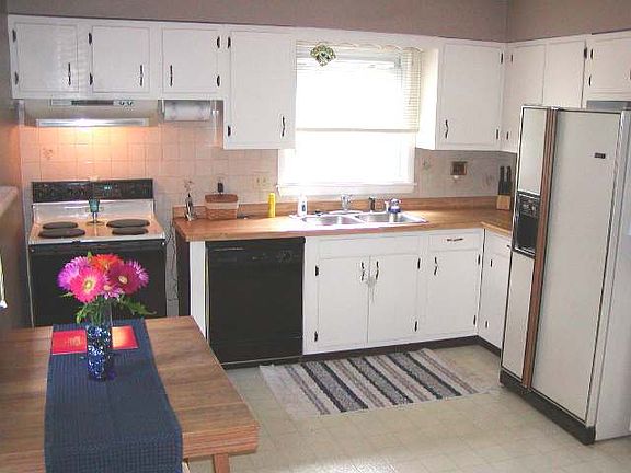 Classic ranch in a desired location where charm prevails over size. Living room with big south facing bay window allows much natural light in the common areas. Eat-in kitchen with many white cabinets, butcher block tops, has door out to deck, plus brick patio & huge garage out back... yet plenty of fenced-in lawn area for the active family & pets! Wood floors on main level even in bedrooms. Festive lower level has lengthy family room w/ wood stove set around wall of stone that makes the whole place toasty throughout the colder months. Along with bar area & half bath for a great hang out. No sidewalks to shovel.