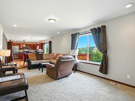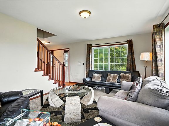 Welcome to this inviting 3-bedroom, 2.5-bath two-story home nestled on a spacious half-acre+ lot that extends to a peaceful creek with a charming bridge. Inside, you’ll find a warm and functional layout featuring a formal living room as well as a main floor family room. The kitchen is designed for both style and convenience with stainless steel appliances, a breakfast bar, pantry, and adjacent dining area that opens to the deck. Some wood floors and rich cherry-finish doors and trim add character throughout. Upstairs, the primary suite offers a private retreat with double sinks and a walk-in closet. The unfinished walkout lower level provides endless possibilities for future living space. Outside, the large deck overlooks a tree-lined backyard, perfect for relaxing or entertaining, while the home is also plumbed for central vac and includes a two-car attached garage.