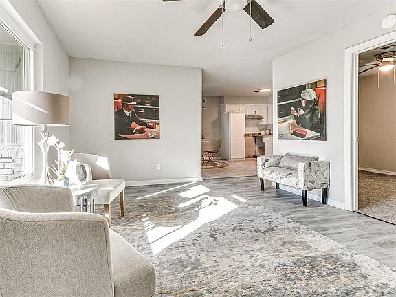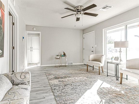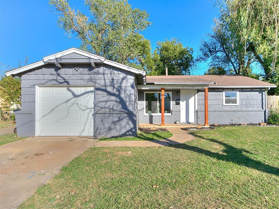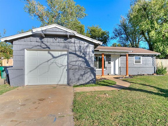 **Multiple Offers - Highest & Best offer due by Friday 10/27/2023 at 7pm, with a Response time of Saturday** Better than new! Fully remodeled with modern updates throughout! This adorable 3 bedrooms,1 full bath also has an attached 1 car garage -- all under 125K! WOW! This home features an open floor plan, a private fenced yard with wonderful mature trees, an oversized covered patio, new laminate flooring, and carpet in the bedrooms. Your kitchen boasts white cabinetry with oil-rubbed bronze-style hardware, new stainless appliances, beautiful granite counters, and an attached dining area. In addition, your home has 4 fans, a pantry, and lots of windows! The master is spacious with a ceiling fan, a sliding door that connects to your backyard, and new carpet! The full bath includes granite counters, custom ceramic tiled shower, and modern lighting. Two additional bedrooms are also good-sized with ceiling fans! Desired location with easy access to highways, Tinker Air Force Base, shopping, eateries, and medical facilities. This home has it all and will not last long!