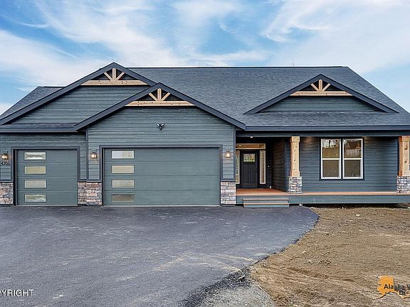 Completed!! New custom ranch floor plan by Northern Quality Homes! This home sits on the bluff with amazing views. Unbeatable location with amazing custom finishes! Home offers custom kitchen with quartz counter tops, black stainless appliances, and walk in pantry. Modern design master bath with a free standing soaking tub and large walk in shower with custom tile work.Open floor plan with so many more features to see, located in a fabulous Wasilla neighborhood. Move in ready!