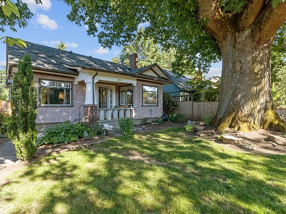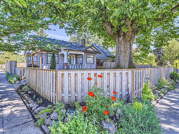 Welcome to this charming Woodstock corner lot home, a blend of character and modern updates. Featuring 3 bedrooms, 1.5 bathrooms, and hardwood floors throughout, this home exudes warmth and elegance. The dining and living rooms boast historic built-ins, adding timeless appeal. An upstairs room offers potential as an office, while the basement includes a nonconforming bedroom for added space. Recent updates include a newer roof and updated electrical. Enjoy the spacious 2-car detached garage with EV charger and the stunning Northern Red Oak in the front yard, one of Portland's Heritage Trees over 200 years old. Don't miss this unique opportunity to own a piece of Portland's history! [Home Energy Score = 2. HES Report at https://rpt.greenbuildingregistry.com/hes/OR10229728]
