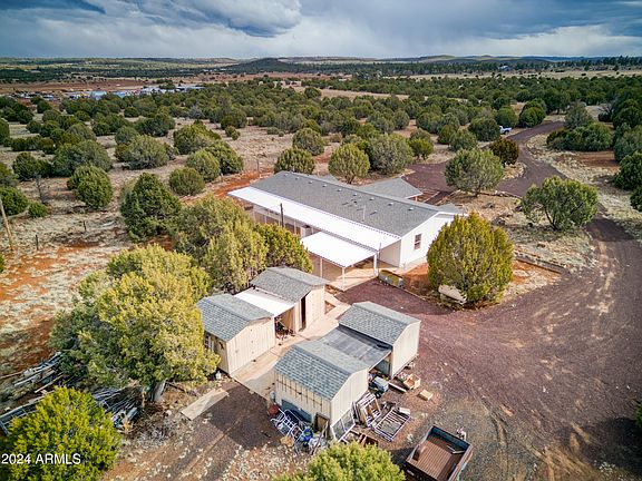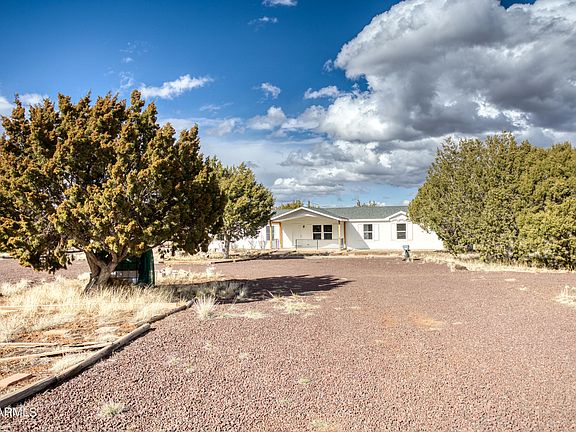 Set on 3.3 acres in Clay Springs, Arizona, this remodeled manufactured home boasts 4 bedrooms, 2 bathrooms, and modern upgrades. With new carpet, vinyl plank flooring, and fresh interior and exterior paint, the interior feels refreshed and inviting. Featuring a split floor plan with a spacious master bedroom, the home offers over 2000 square feet of comfortable living space. Along with plenty of storage sheds, utilities and water availability add convenience to this property. Come check out this home today!