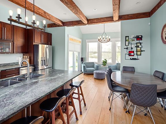 Rare opportunity for net-positive, 6000+ square foot multi-use investment property equidistant between Stowe village and downtown Waterbury, home of Hen of the Wood, the award-winning #1 restaurant in Vermont. Located on a high-visibility section of route 100 directly across from the Green Mountain Club, with stunning views of Camelback Mountain, this sprawling 18th century farmhouse has undergone a complete, high-quality full renovation – and is zoned for either commercial or residential use, with 3 separate rental areas - each with one or more full or ¾ bathrooms. Ski part of the day or hike on one of the many nearby trails, then shower and return to work. Rent all five units to businesses. Or rent one or more units for residential use or Air B&B with the perk of a beautiful, rubber-floor gym. Rent one or two units and keep others as a multi-family ski house. Or run your own business, rent two other units and live in one of the multi-bedroom units for free. The possibilities are endless. All within 15 minutes of the lifts at the upscale Stowe resort or 30 min to Sugarbush, nestled in one of the most beautiful, upscale home and recreation areas of Vermont.
