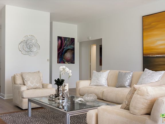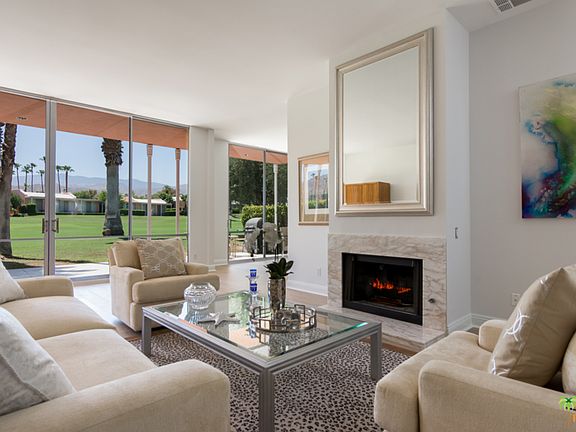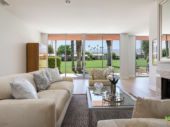 An AMAZING celebration of Hollywood Regency architecture; recent gorgeous updates; and a stellar combination of windows, light and views - this elegant 3 BR / 3 BA Marrakesh Country Club home (Model D) is the crown jewel of the community! Offering highly sought after North/South exposure, this home has a regal, open-concept layout and a luxury foyer entry with entry from your own private courtyard. Walls of glass windows welcome you home and the king-sized master suite with spa-style bathroom can be your oasis in the desert. The chef's kitchen offers stainless steel appliances, plenty of cabinets, adjacent indoor laundry! Recent updates include interior paint, new floors, new carpet, more! Located minutes to world-renowned El Paseo Dr, this community offers an 18 hole executive golf course, tennis, 14 pools and spas, and a fitness center!