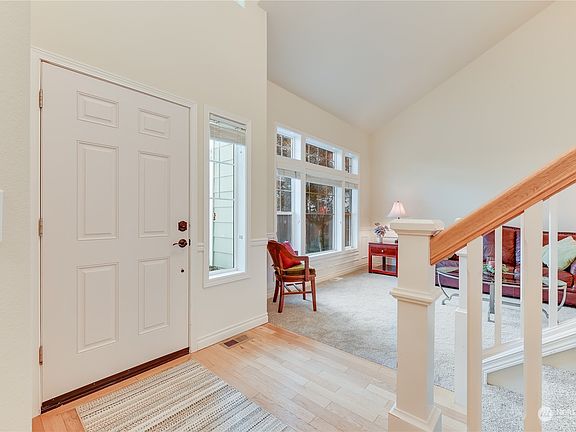 Quiet cul-de-sac living backed by natural greenspace! Grand entryway with high vaulted ceilings and beautiful formal living room leading to formal dining area looking out to backyard. Spacious open kitchen great for cooking and socializing with eating space and family room. Large pantry! Gather around the cozy stone fireplace in the family room. Upstairs enjoy an oasis in the large primary bedroom overlooking backyard natural space. Walk-in closet off updated primary bath with soaking tub. Open hallway overlooking the living room and entryway. 3 more good sized bedrooms and a full bath. Owners have lived here since it was built. New carpet, flooring, and paint! Near to I-5, Mountlake Terrace Pavillion, shops, and restaurants. Move in ready!