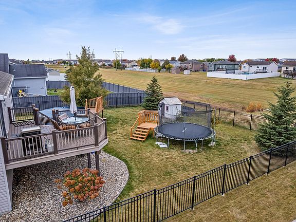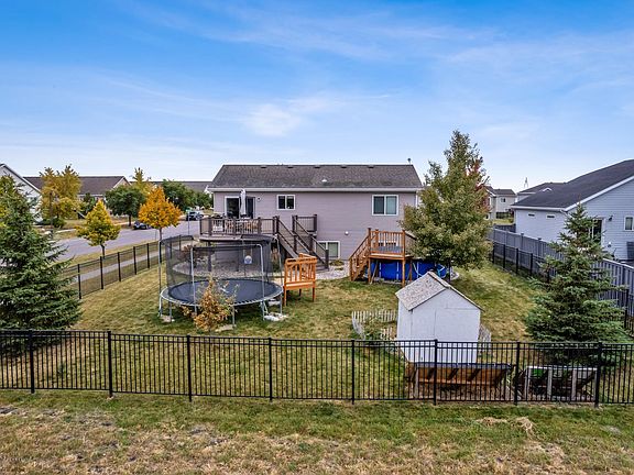 Fantastic 4 bedroom, 3 bath bi-level on Osgood corner lot with no direct backyard neighbors! Fabulous exterior amenities with mature landscaping, maintenance-free deck, fully fenced plus optional trampoline, playhouse and outdoor pool (to be included or excluded, buyer's choice!). Primary bedroom has private bath plus additional bedroom and full bath up. Two more bedrooms and full bath down. Light & bright living room opens to kitchen/dining with eat-up island. Stainless steel appliances and tiled backsplash. Fabulous second living space in lower level family room has gas fireplace with stone surround plus dry bar with mini refrigerator & built-ins. Lots of home with lower specials!